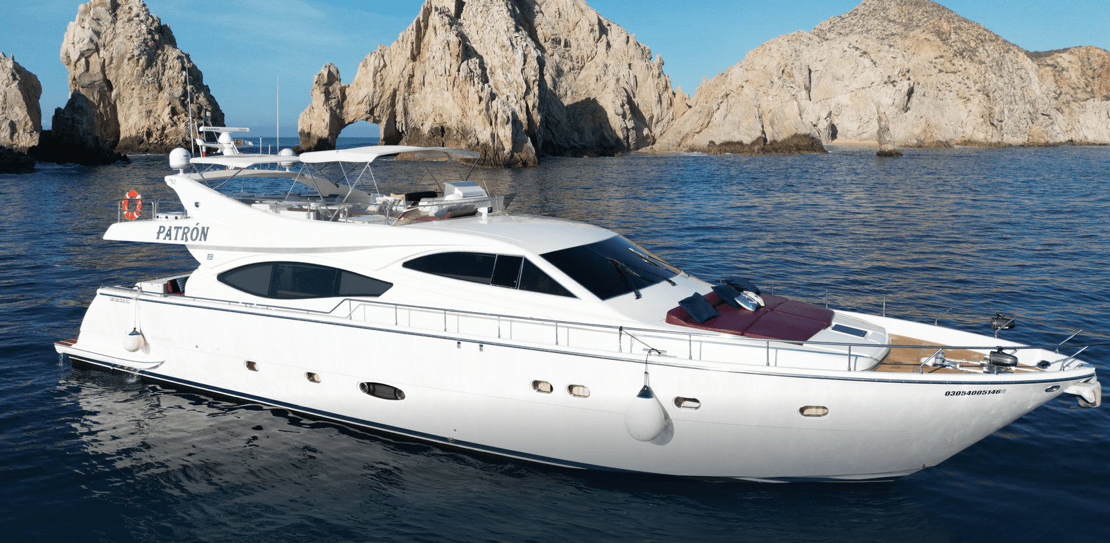 A wealth of sun-blessed outdoor spaces makes Patron a superb option for warm-weather cruising, and a triple-width sunpad out on the foredeck provides the perfect place for working on your tan. At the more sheltered, teak-lined aft-deck, meanwhile, you will find a curved transom sofa and a breakfast table, as well as side steps down to a full-beam bathing platform with a recessed storage space. The bridge is given over to semi-circular sofas, rounded sun pads, an upper helm and a wet-bar station with a grill and chilled drinks storage.
